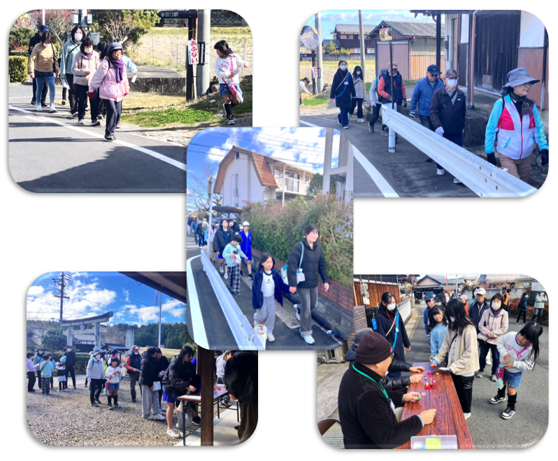 3月14日(土)『ふるさとウォーク あかめ』を開催いたしました。好天に恵まれ1歳~89歳までの140名の方に参加いただきました。景色や会話を楽しみながら歩き、ゴール後は屋外にて豚汁、おにぎりを楽しんでいただきました。参加者の皆様のアンケートで『近鉄沿線の菜の花畑が満開で良かった』『初めて知った神社の歴史などもわかった』『来年も豚汁・おにぎりお願いします。おいしかった。』など新たな発見を楽しんでいたようです。また、幾つかの提案も頂いておりますので今後の参考にさせて頂きます。